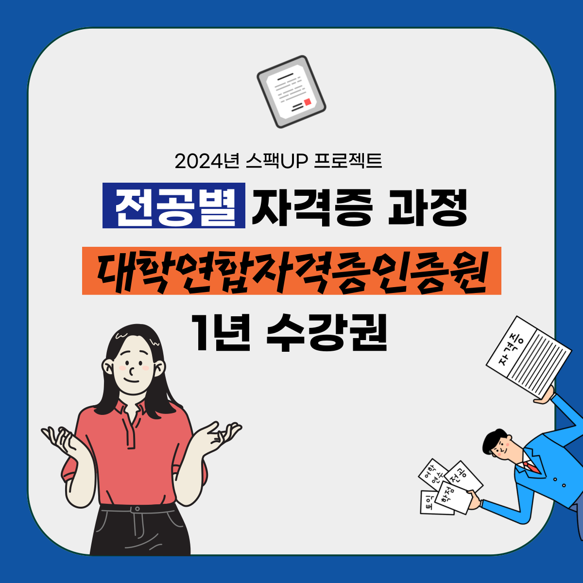 인문계열학부 경영계열학부 | 노후설계지도사1급, 인사총무관리자1급 빅데이터전문가1급, 품질검사마스터1급 프리젠테이션전문가1급, 컴퓨터OA마스터1급 컴퓨터사무정보처리사1급, 전산회계1급 검색광고마케터1급, 광고기획전문가1급 창업상권분석지도사1급, 네트워크전문가1급 정보보안전문가1급, 고객상담사1급 부동산자산관리지도사1급 부동산권리분석사1급, 부동산토지전문가1급 소프트웨어교육지도사1급 스마트IT컴퓨터지도사1급 스마트폰활용지도사1급 코딩지도사1급, 개인정보관리사1급 해킹보안전문가1급, 전산세무1급 엑셀실무전문가1급, 기업교육전문가1급 | 매경TEST, 무역영어 물류관리사, HSK3급 KBS한국어능력시험 FAT1급, 재경관리사 전산세무, 전산회계 지텔프(G-TELF) 토익, 컴퓨터활용능력2급 공기업수리NCS 한경테셋 지역농협6급, TAT2급 |